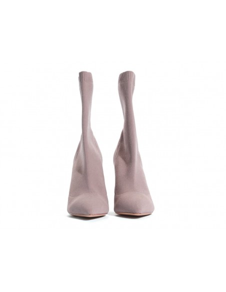 Botki na stabilnym słupku wykonane z wysokiej jakości elastycznej tkaniny w pięknym, niespotykanym wrzosowym kolorze.