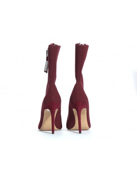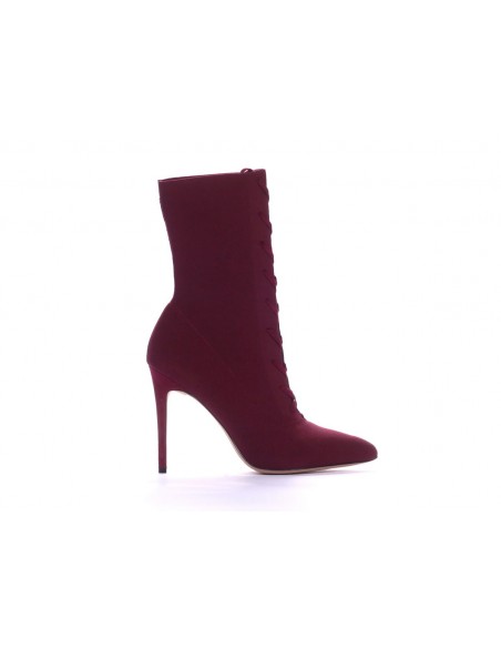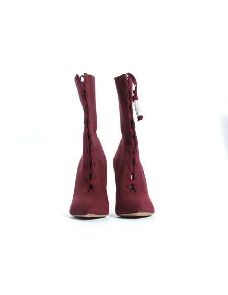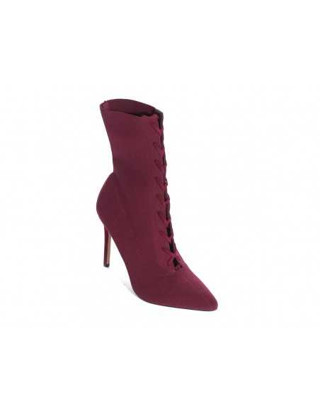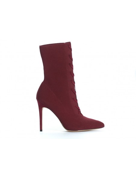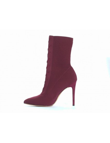 Eleganckie botki wiązane na szpilce w pięknym bordowym kolorze wykonane z wysokiej jakości tkaniny elastycznej.